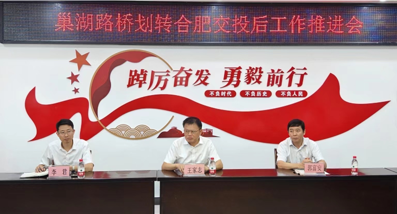 合肥交投党委委员、副总经理王家志对巢湖路桥的前期发展给予了充分肯定,并就巢湖路桥划转合肥交投后工作推进提出要求:一要提高站位,积极转变思想,不断在情感上、组织上和管理上促进融合;二要摸清家底,充分了解企业现况,提高企业管理效率和综合竞争力;三要强化经营管理,增强市场开拓能力,努力做好各项业务,争创营收,促进公司效益不断提升;四要控制经营风险,加强各项风险防范措施建设,提高抗风险能力,促进企业健康平稳发展。