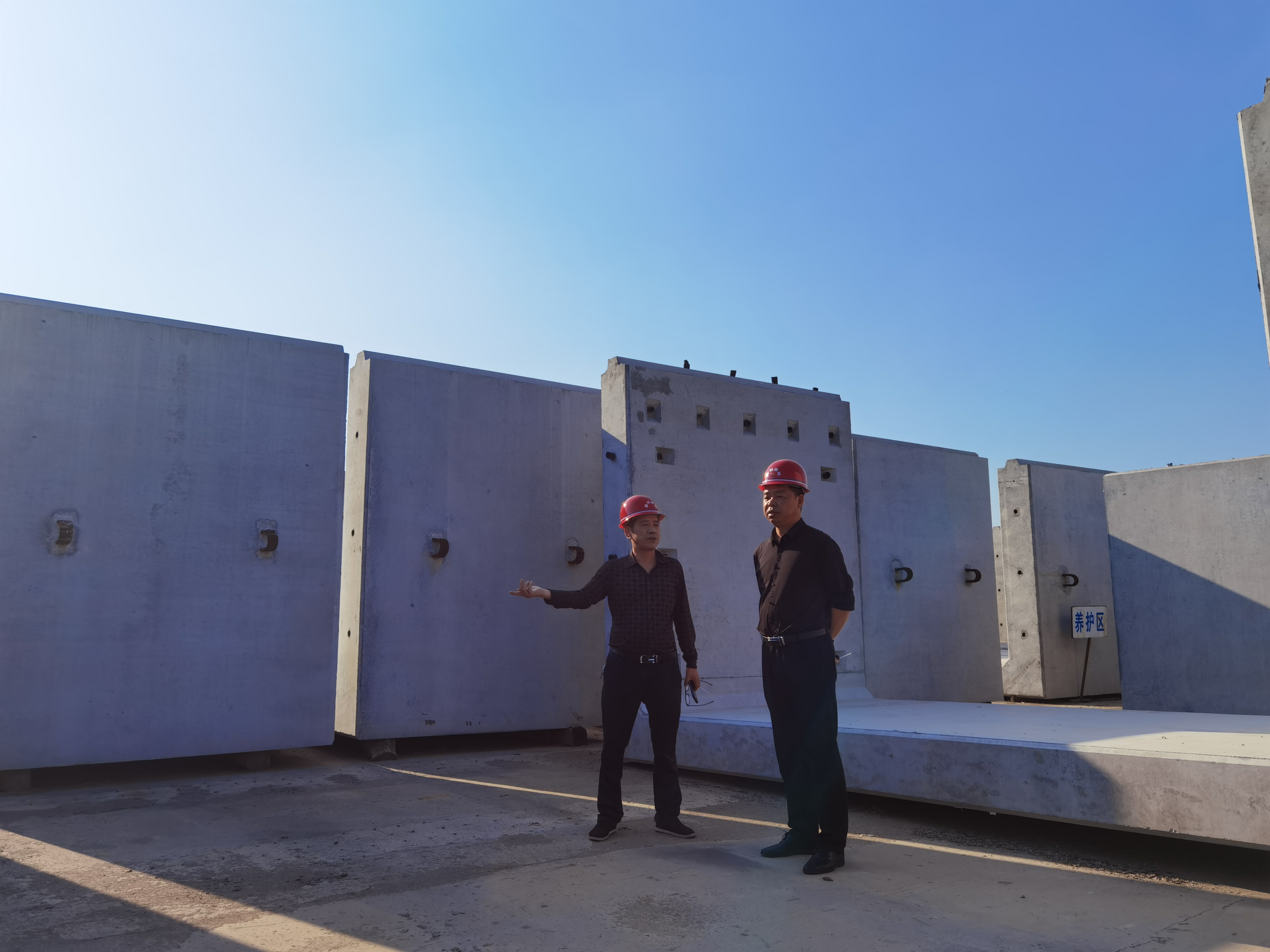 参观组一行深入施工现场,对箱涵预制、新泽西护栏预制、钢筋加工等施工环节作出进一步交流,并对我公司预制构件生产的规模及工艺给予高度赞赏。