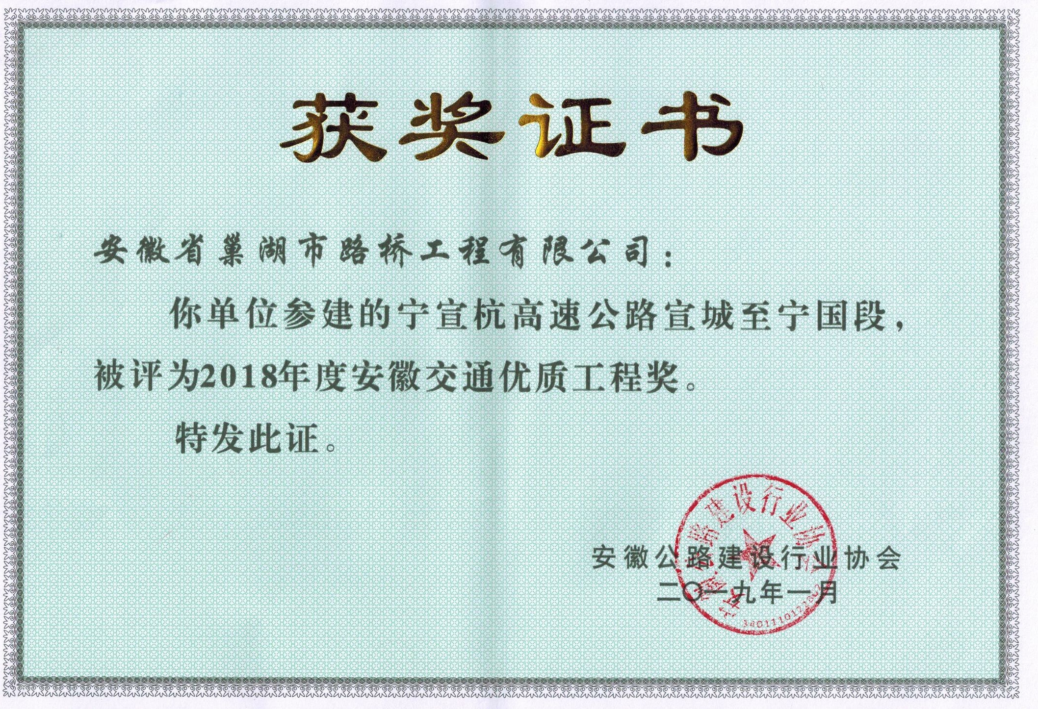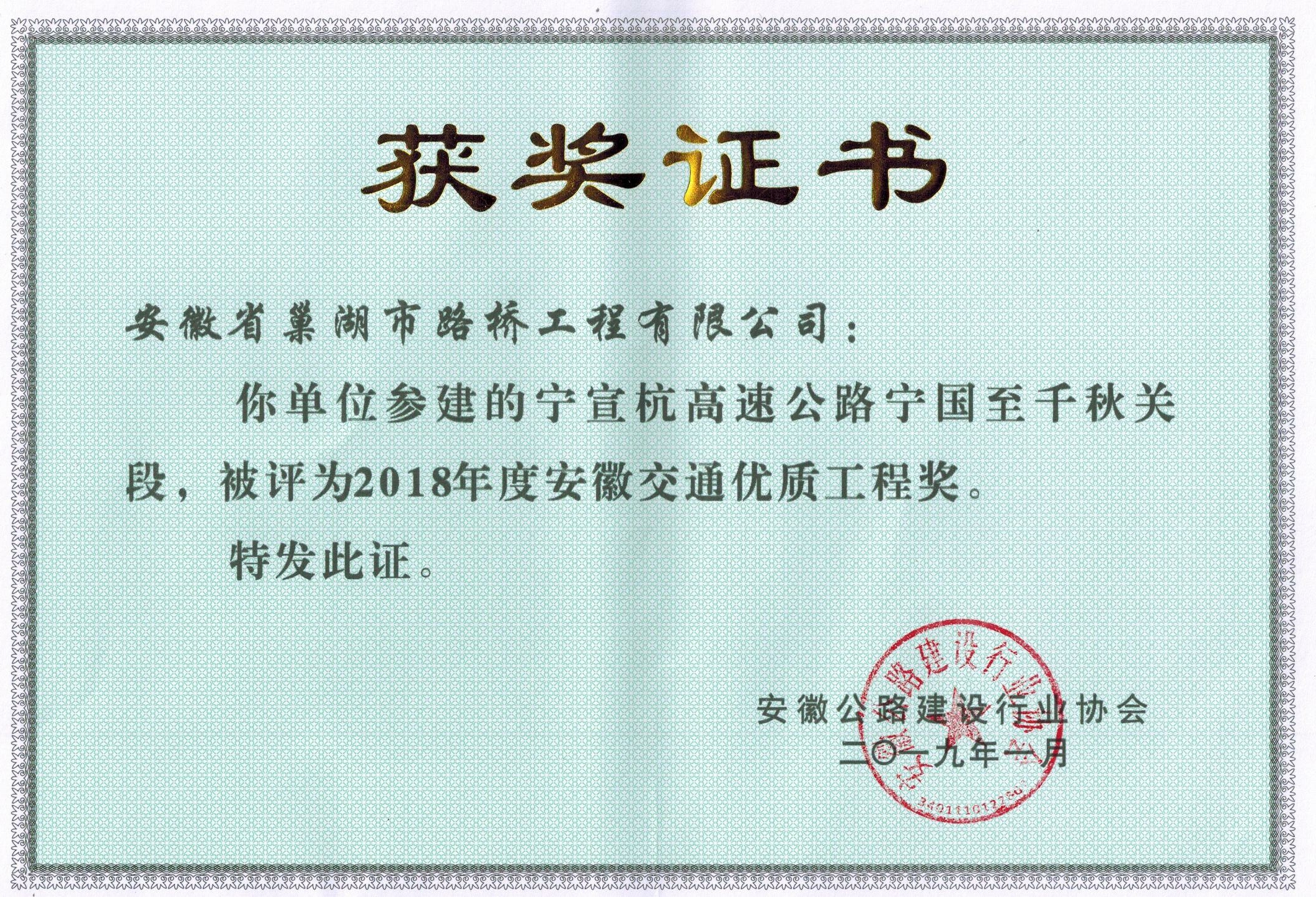 热烈祝贺集团公司工程项目获得安徽交通优质工程奖