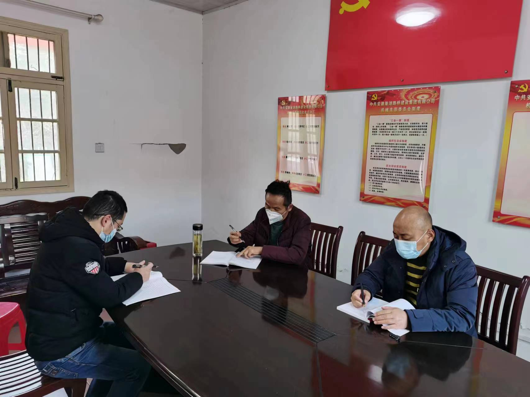 工程支部:1月5日,在项目部会议室召开支委会,贯彻学习两会精神;1月9日,在各党小组会议室开展了主题党日活动,普及金融安全知识,树立传统美德,送上新春祝福;三个党小组会议分别在1月10日、1月11日、1月12日召开,主要内容分别为:总结过去,展望未来;学习两会精神心得;树立廉政榜样,带动工作作风。