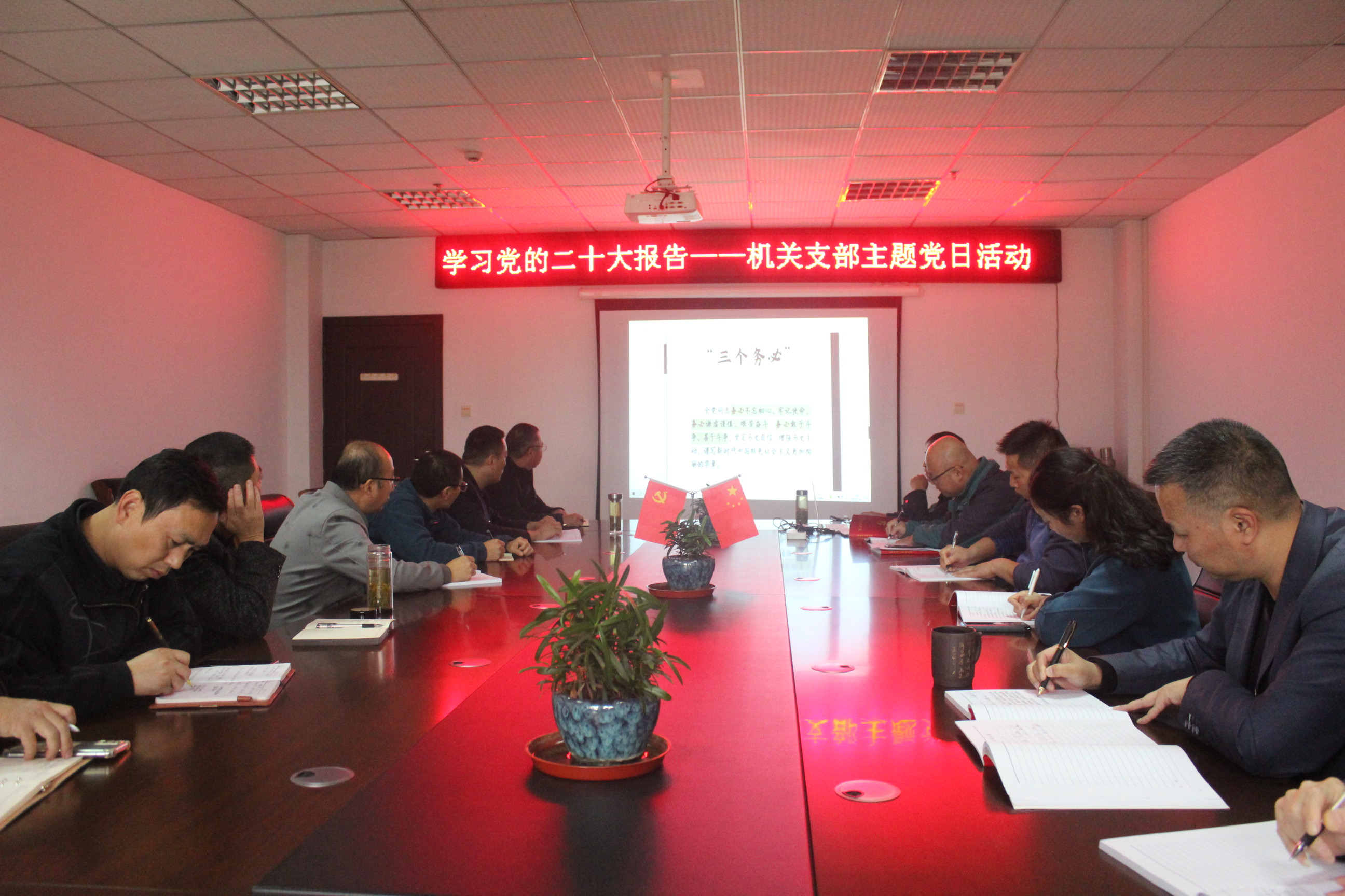 机关支部:11月2日,在七楼会议室召开支委会,商讨本月党建活动的开展;11月4日,在七楼会议室开展主题党日活动,邀请党委书记李青冬同志带领大家学习党的二十大报告;11月11日,在七楼会议室召开党小组会议,学习中国共产党第十九届中央委员会第七次全体会议公报。