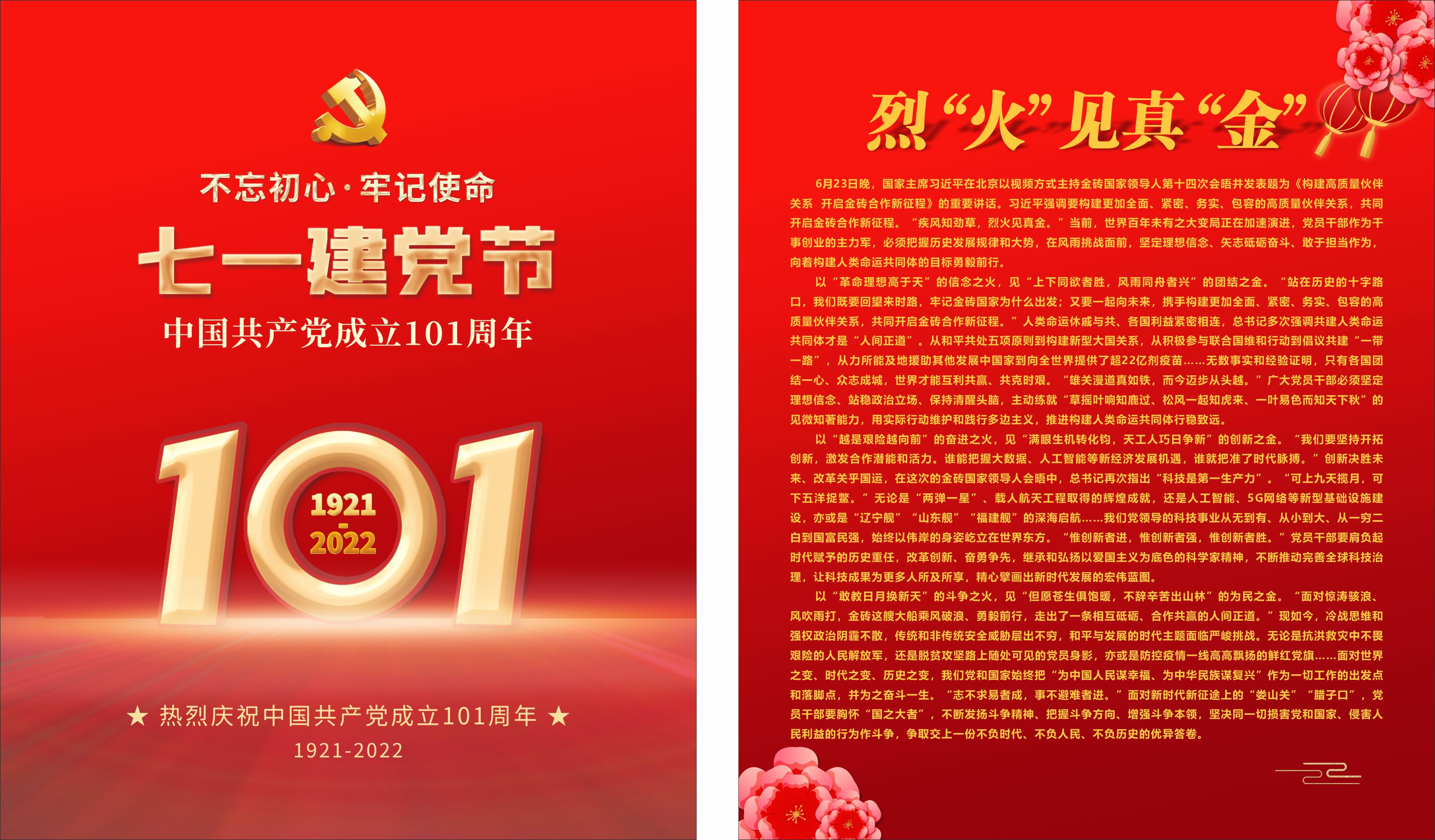 6月29日,巢湖路桥制作中国共产党建党101周年宣传栏,庆祝中国共产党101年华诞。宣传栏内容截取国家主席习近平在北京以视频方式主持金砖国家领导人第十四次会晤并发表题为《构建高质量伙伴关系 开启金砖合作新征程》的重要讲话,加深党员们对中国共产党成立的历史意义、深远影响的认识,以及对未来发展的要求:面对新时代新征途上的“娄山关”“腊子口”,党员干部要胸怀“国之大者”,不断发扬斗争精神、把握斗争方向、增强斗争本领,坚决同一切损害党和国家、侵害人民利益的行为作斗争,争取交上一份不负时代、不负人民、不负历史的优异答卷。