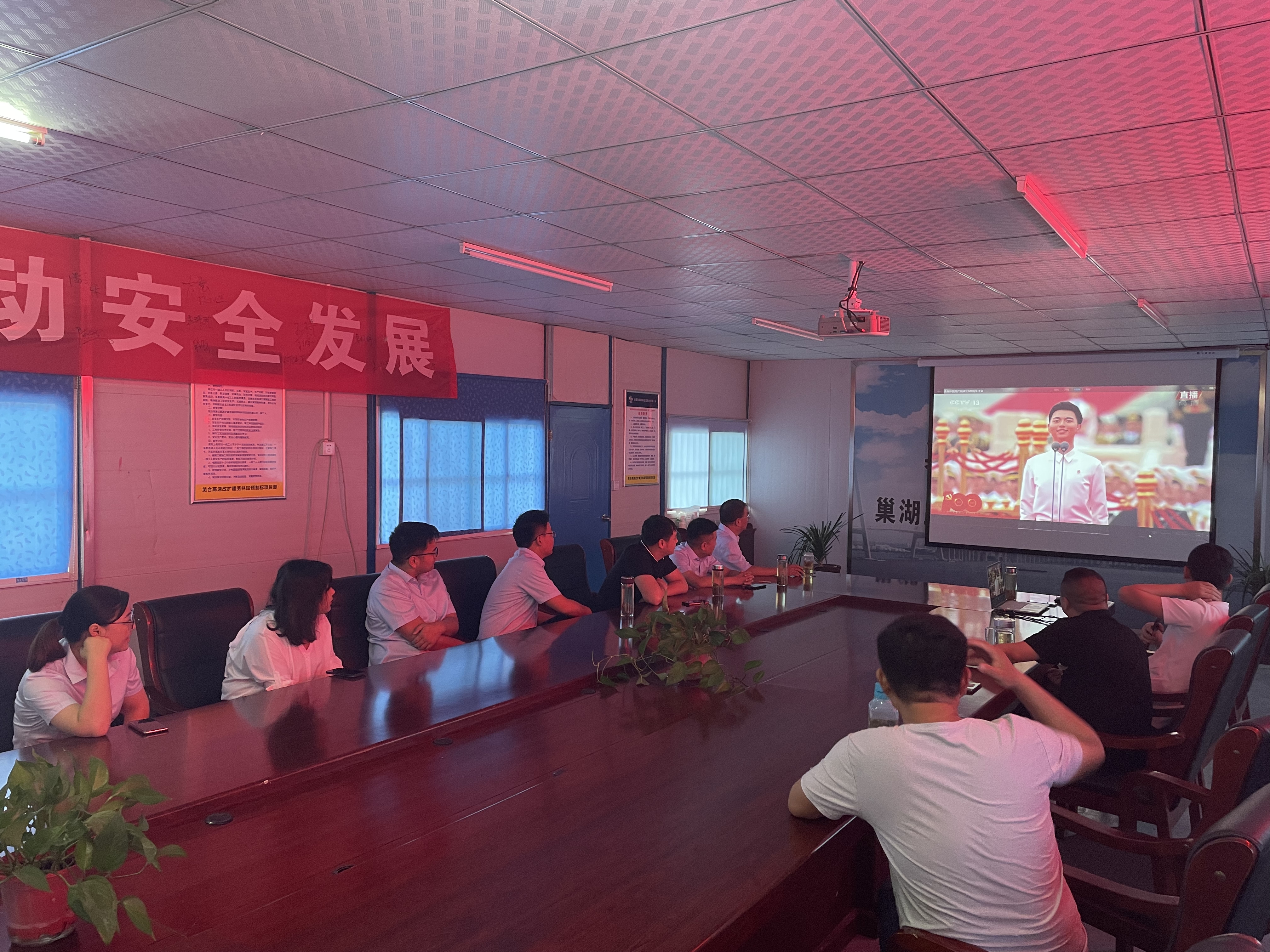 庆祝中国共产党成立100周年大会于7月1日上午8时在北京天安门广场隆重举行。中共中央总书记、国家主席、中央军委主席习近平发表重要讲话。安徽巢湖路桥建设集团有限公司机关支部、机械支部、工程支部分别组织党员及职工准时收看了此次直播。