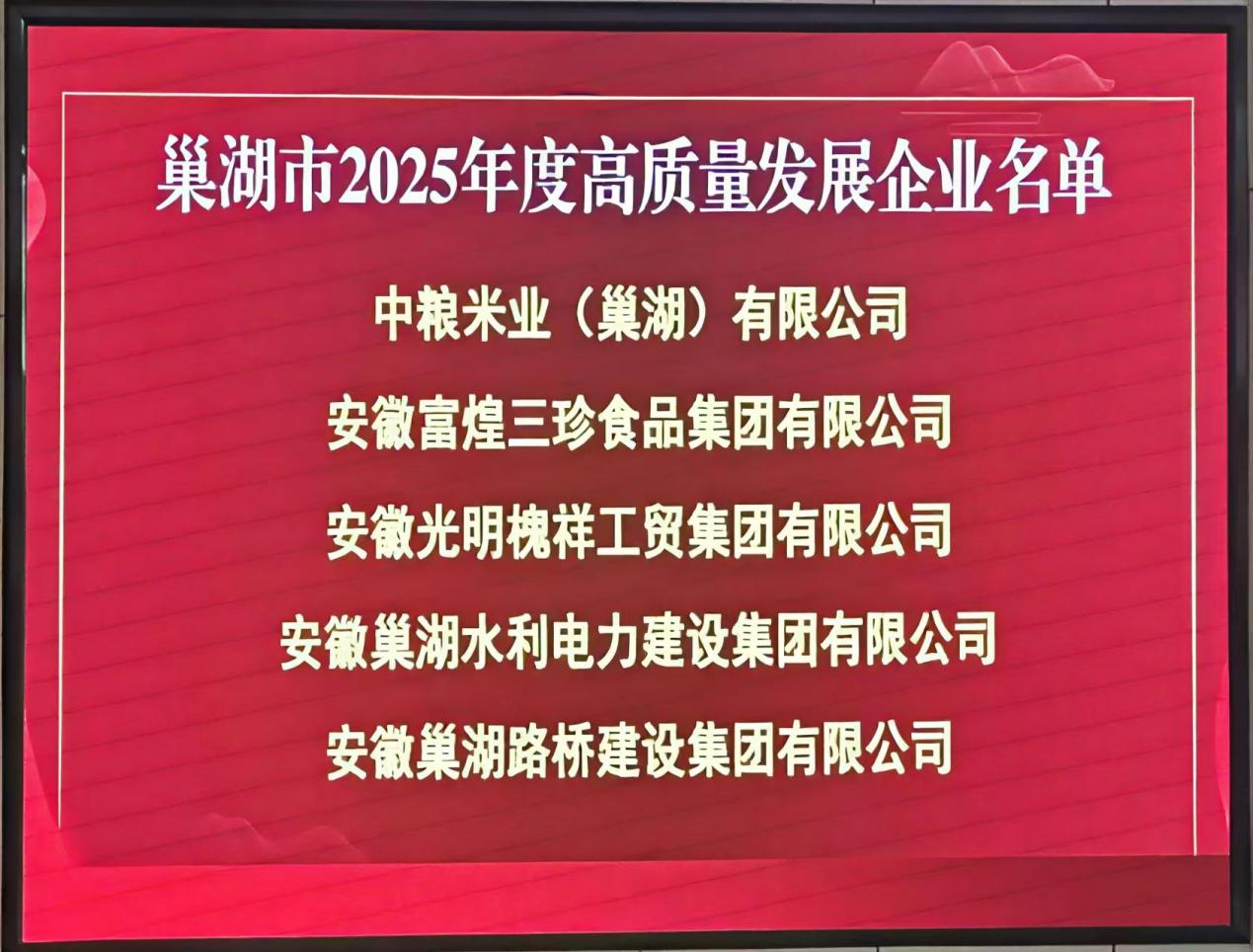 实干筑路启新程,巢湖路桥荣获“巢湖市2025年度高质量发展企业”荣誉称号!